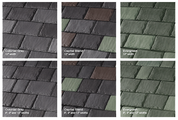 CertainTeed Symphony composite slate roofing has excellent weathering capabilities for long life, combined with exceptional UV fade-resistant surface technology for superior color stability. Available hip and ridge accessory complement the shingles and enhance the slate-inspired look of the roof-line. Symphony composite slate roofing also has a thicker nominal ½ profile for a richer, more beautiful appearance. Symphony composite slate roofing comes in a variety of colors and blends as shown.